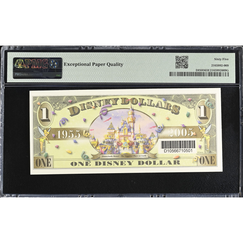 2005 Disney Dollar $1 Dumbo - PMG 65 EPQ - Disneyland 50th Anniversary - DIS95